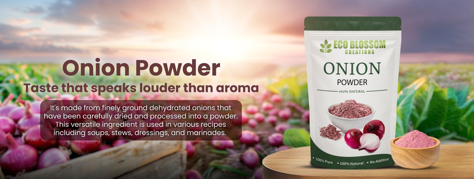 Eco Blossom Creations is a forward-thinking company dedicated to producing and exporting premium-quality natural powders, organic products, superfoods, and eco-friendly solutions. Our team works closely with local farmers, ensuring that every product we offer is grown responsibly, harvested with care, and processed under strict quality standards. We believe in sustainable agriculture, clean processing, and transparent business practices—values that make us one of the most reliable names in the natural products industry.